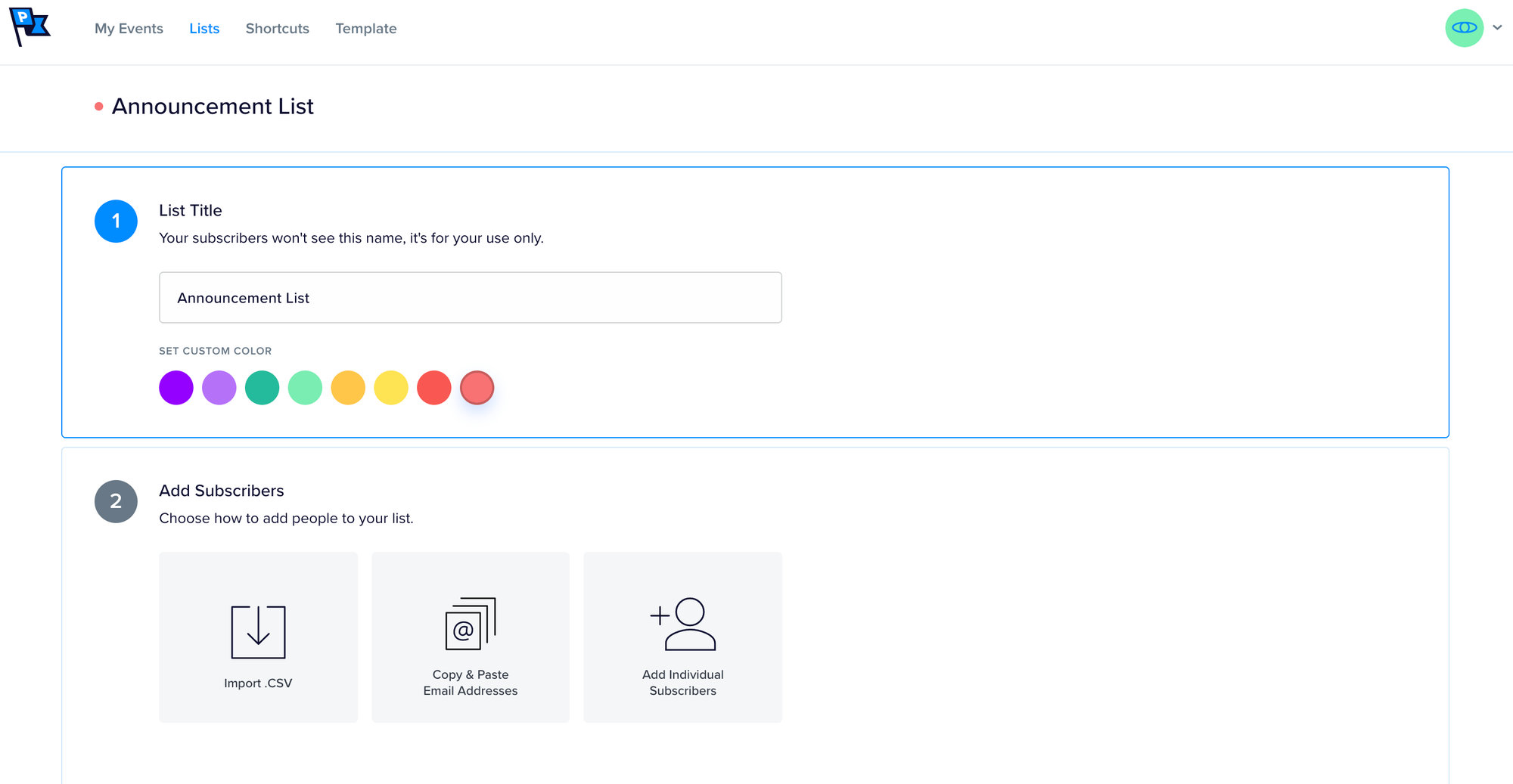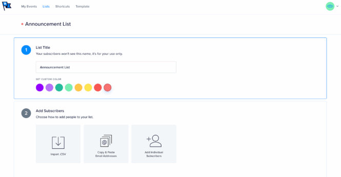 As always, you can get more in-depth on the details of how to use this feature with our Knowledge Base. In the meantime, here’s the big picture… Create your first custom list by heading to the Lists tab in Promoter, from there you’ll be able to name your list and designate a color for easy organization. You’ll then choose how to add subscribers to your list, as we mentioned earlier, you can do this via CSV upload, cut and paste, or one-by-one.