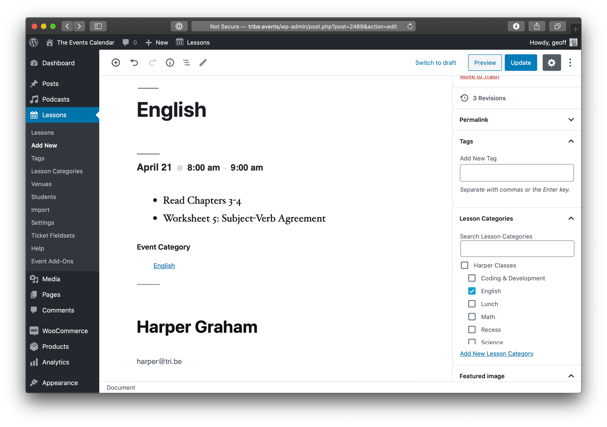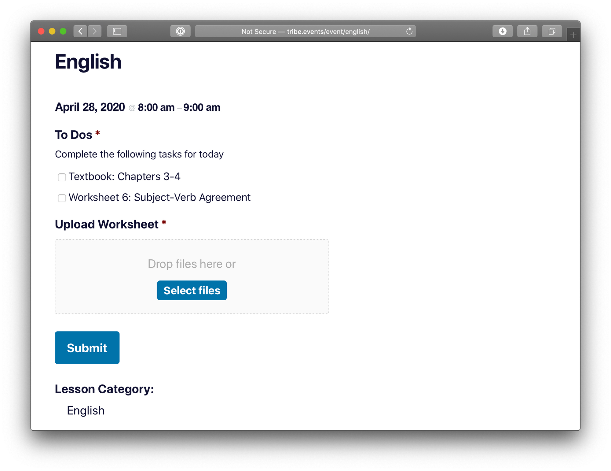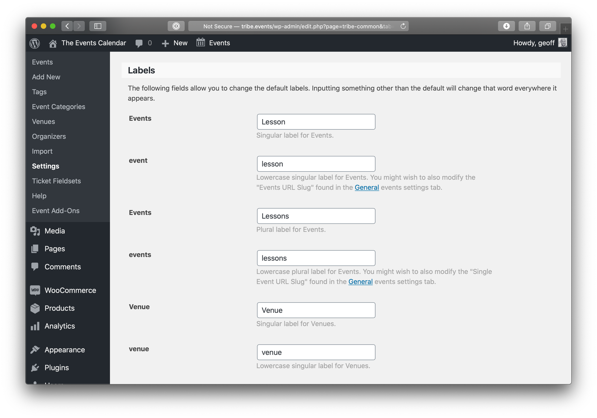 This may seem like a minor detail, but I found it hard to create lessons in The Events Calendar when everything I published was called an “event.”