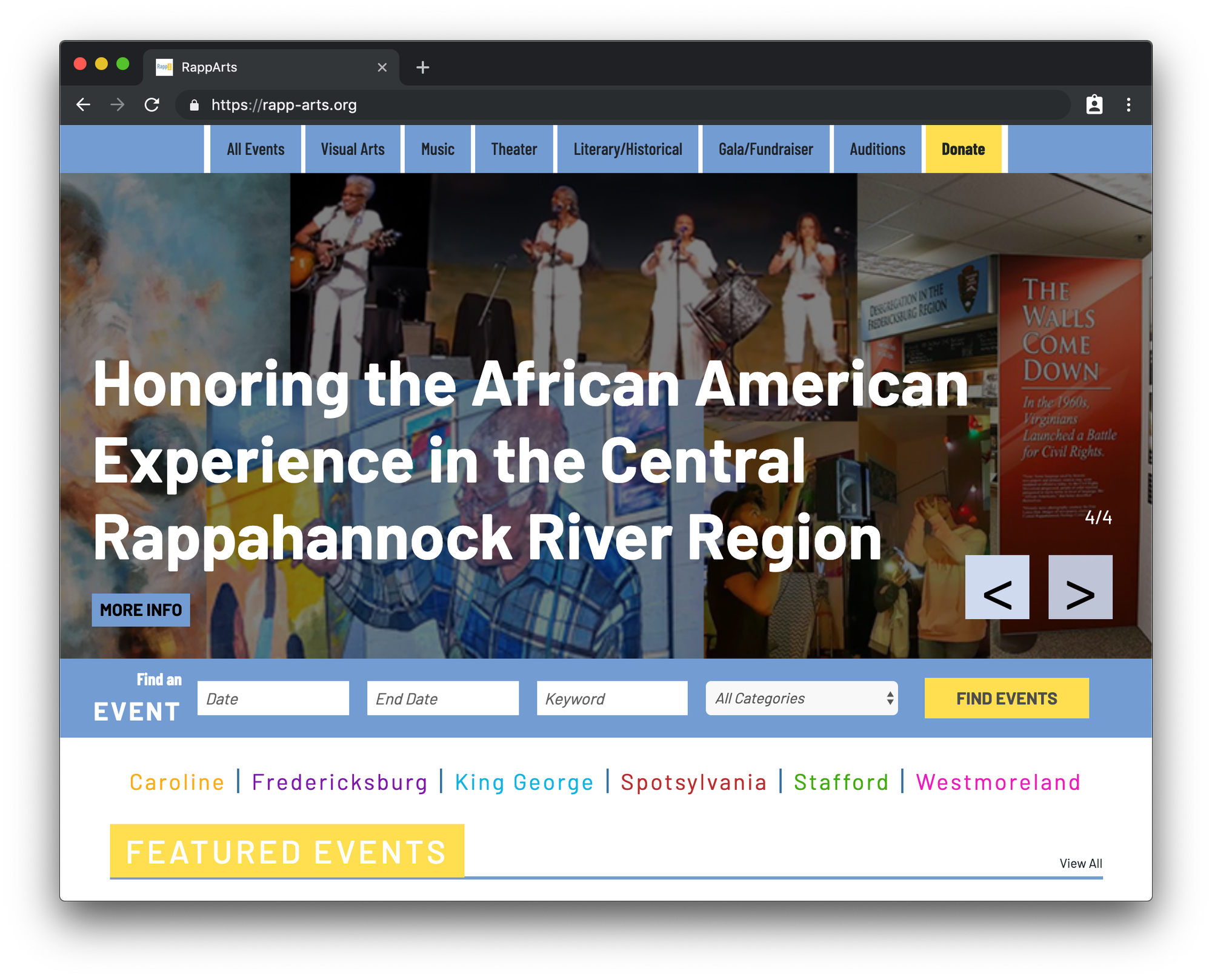 We love the events search bar that’s front and center on the Rapp-Arts homepage:
