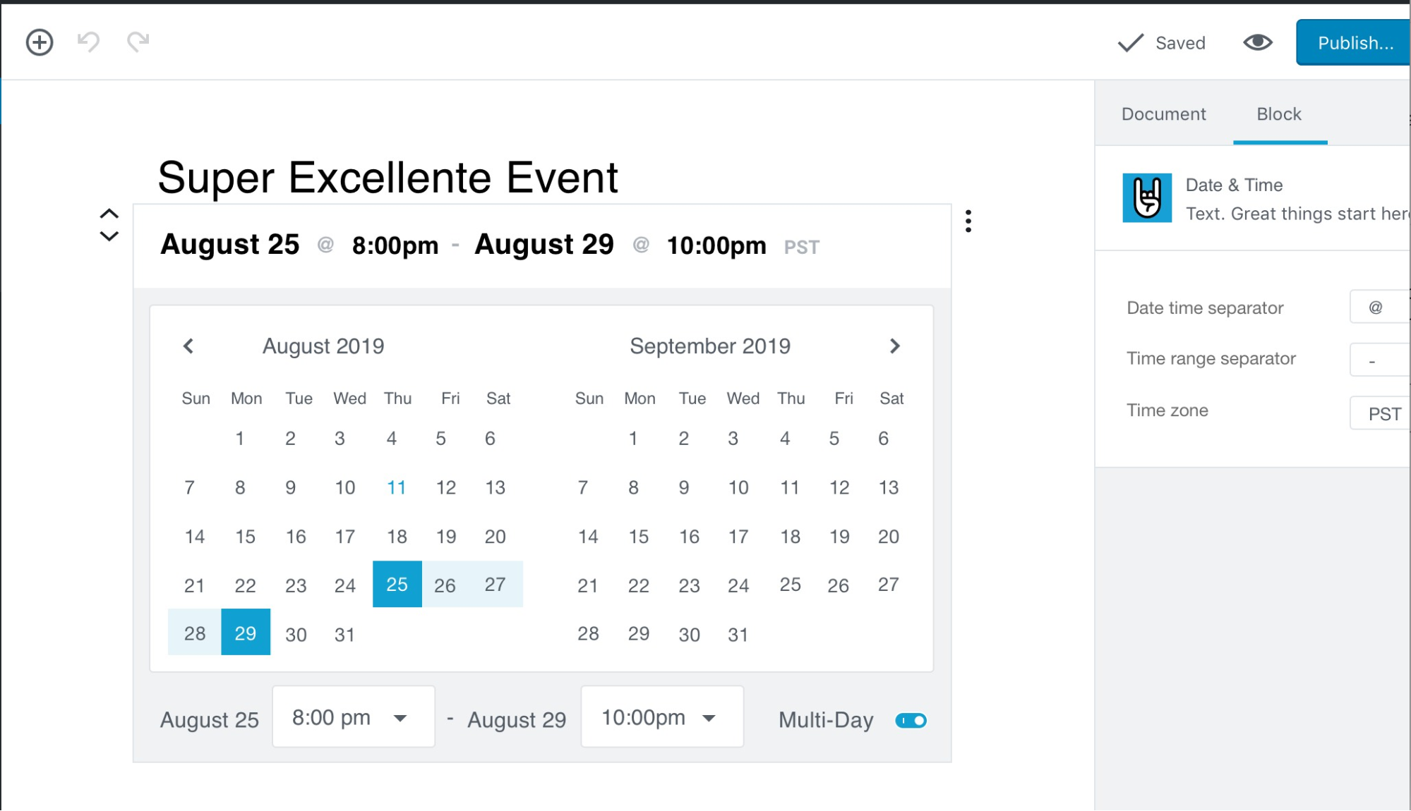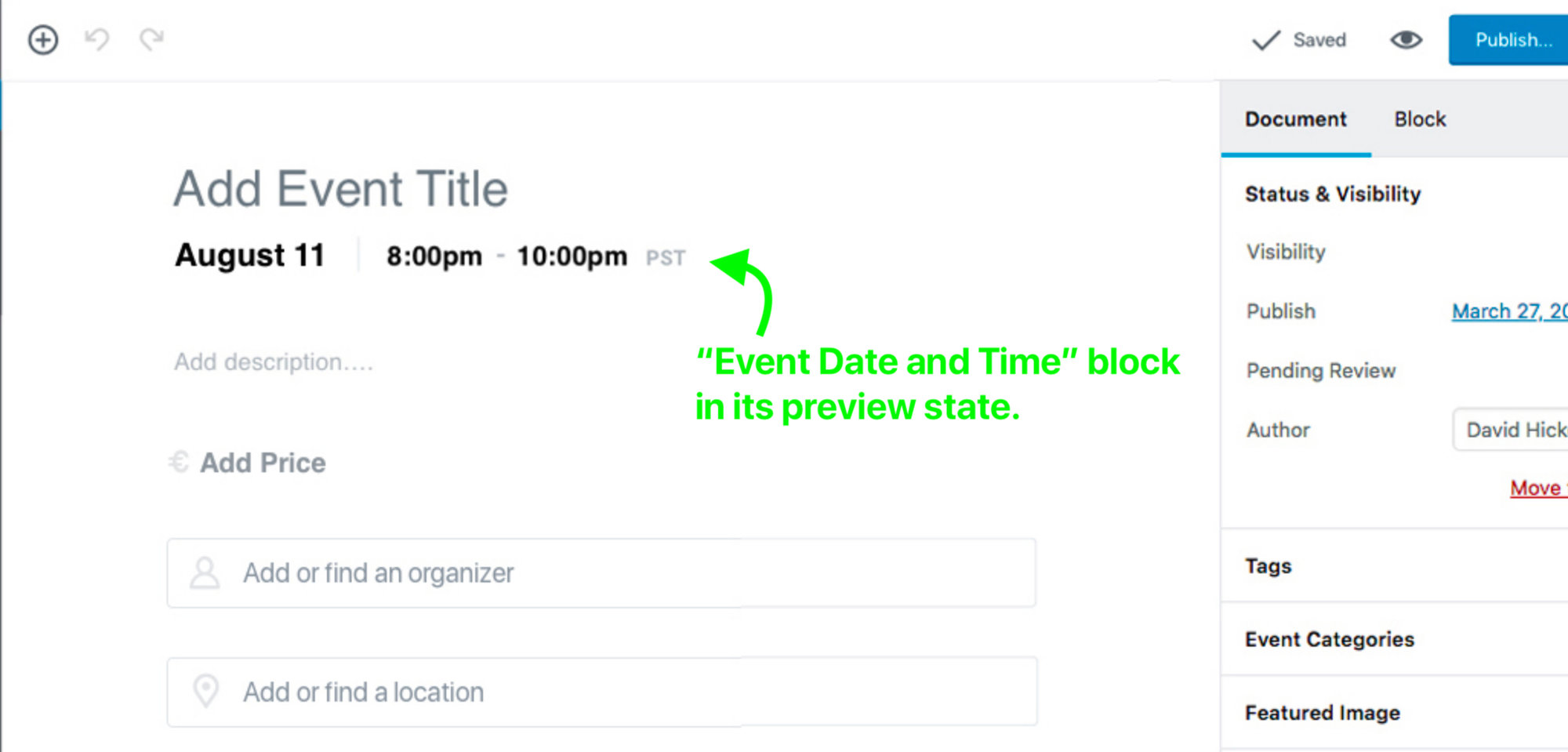 Now let’s turn to the Date and Time block. Here you can see its unassuming preview state: