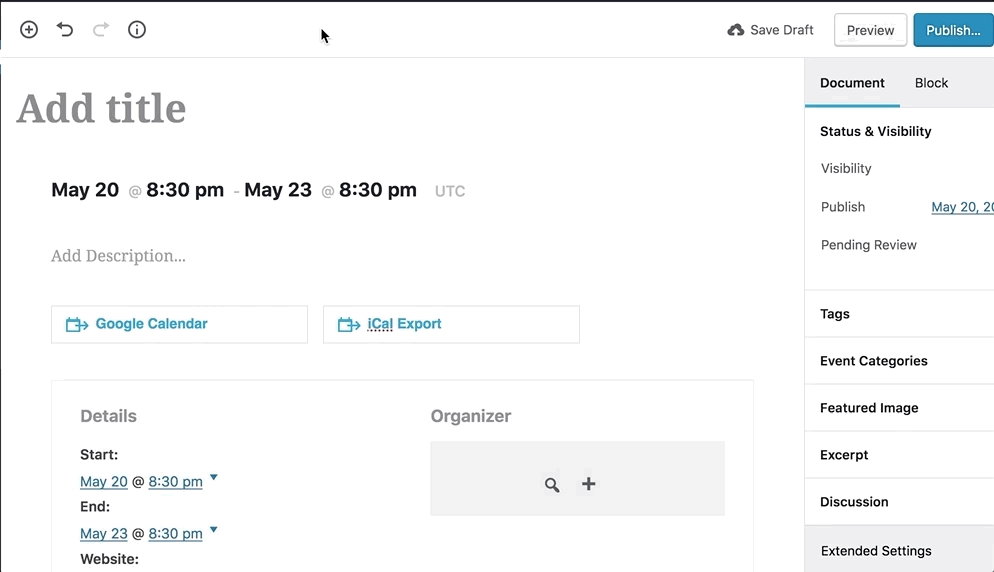 Our Event Sharing block is so simple that it doesn’t need an active and preview state—the block closely resembles how it’ll look on the front end and requires such little configuration that the block is truly WYSIWYG: