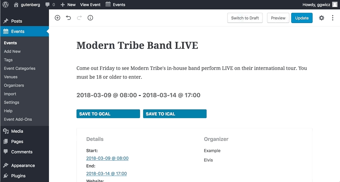 The promise of the new editor feels more real than ever, and we’re excited to share more as we continue to evolve our plugins alongside WordPress itself. Download and tinker with the new Events Gutenberg extension yourself, and be sure to subscribe to this blog and/or follow us on Facebook and Twitter so you never miss an update.