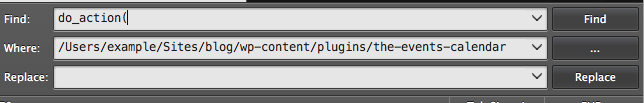Searching for all instances of do_action within The Events Calendar with Sublime Text.