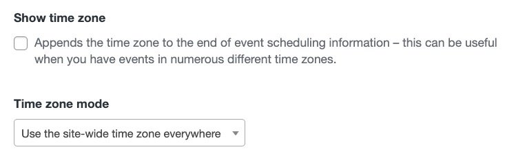 👋 If your site is in the “Use the site-wide time zone everywhere” mode, changing an individual event’s time zone will make no difference in how the time displays on the front end; you’ll have to change the time zone mode to “Use manual time zones for each event.”