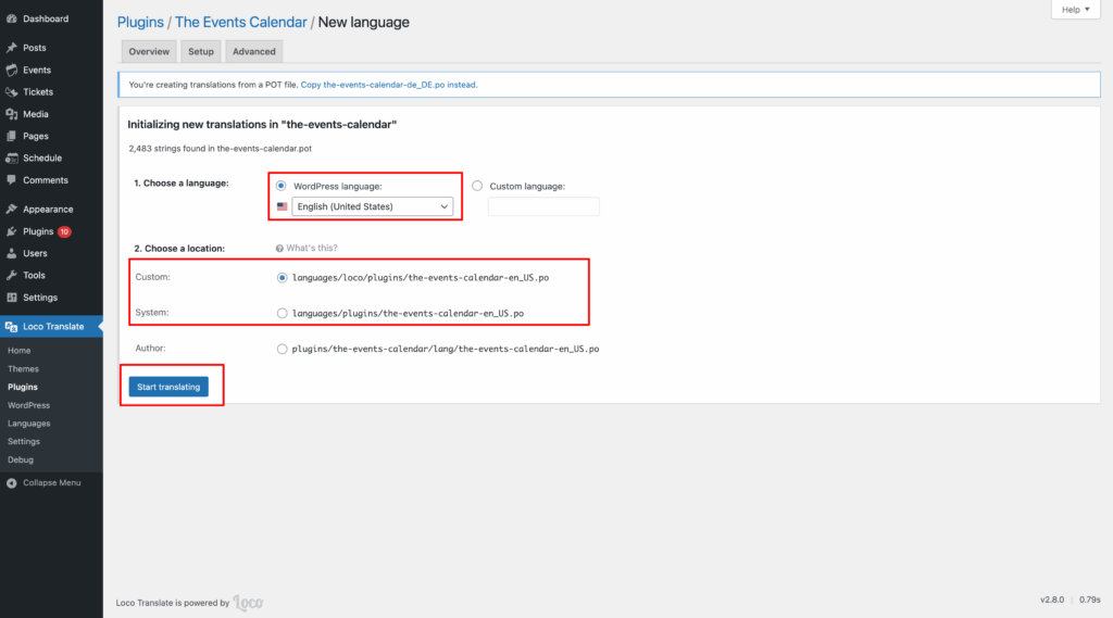 - Go to Loco Translate > Plugins and find The Events Calendar (or any other add-on you wish to modify, e.g., Events Calendar Pro)