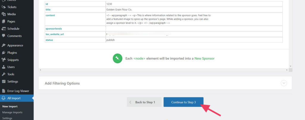 - After uploading the file, it’s time to select the post type. Just like step three in the exporting process, we’ll select Sponsors as post type.