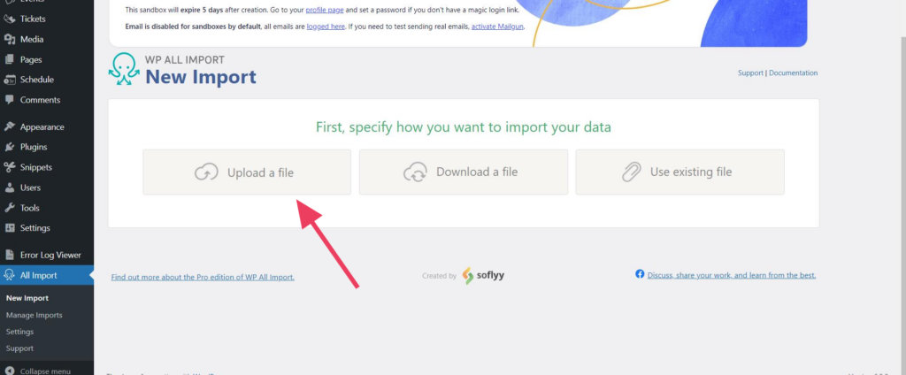 - Under All Import > New Import, select the file (in this case, Sponsors).