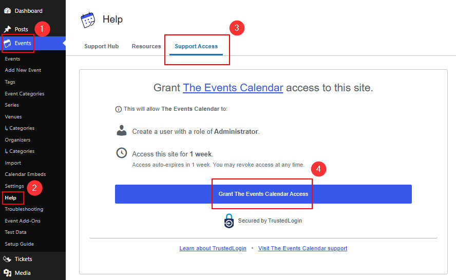 Follow these steps to enable TrustedLogin and provide the access key to support: