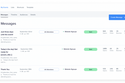 Save busy work and automatically send emails when attendees perform specific actions. Want to send an email right when someone purchases a ticket or submits an RSVP? Triggered messages have you covered.