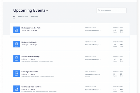 The ultimate time-saver for event communication. Set up a series of messages (or use one of our recommended Campaigns), and attach a Campaign to events synced from The Events Calendar.