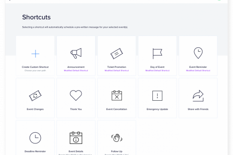 Easily schedule pre-written messages at common event touchpoints, where they’ll be automatically customized for the attendee. Put several shortcuts together to create a Campaign and attach to any event for lightspeed email automation.