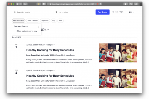 Simply select the “Dress Attire” field in the Filter Bar settings screen and it will become an option in the filters for users to search for events by whether they are formal or casual. Check out this article in our knowledgebase for complete instructions.