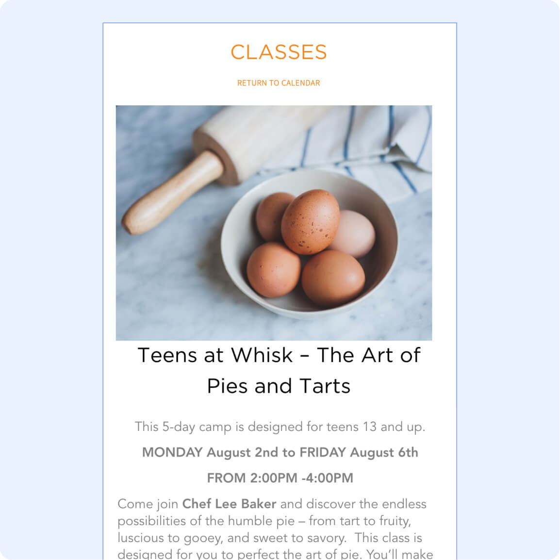 The homepage features a customized Photo View shortcode with event dates inside of the photo cards. They use their custom theme to display the main calendar page and use the Skeleton Styles template, which allows for more CSS flexibility, so that the custom theme elements remain front and center. The Attendee Registration on the ticket page allows them to collect additional information about each attendee, which creates a more personalized experience for each attendee.