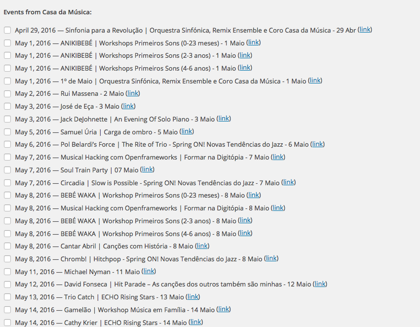 2. After doing this, if you head into the admin page for Events do you see events from those pages imported correctly?