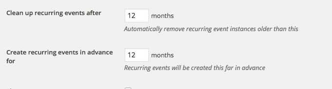 If you shorten the “cleanup recurring events after” option to something like 1 month, it may make a difference on your site and help keep the load of recurring events in the past to only show events in the past few weeks, with anything beyond that being deleted.