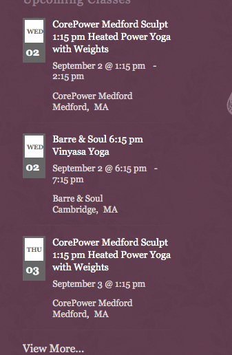 http://jennduranyoga.comNotice how it is only listing classes on Wed 16, Thu 17 and Fri 18, but there are still 2 classes left tonight, Tues 15, see below on the calendar page, Tuesday has dates.