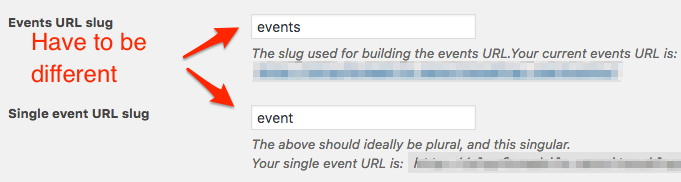 The issue is with the single-event slug. This slug absolutely needs to be different than the calendar slug (see attached screenshot)