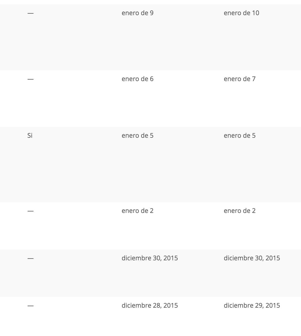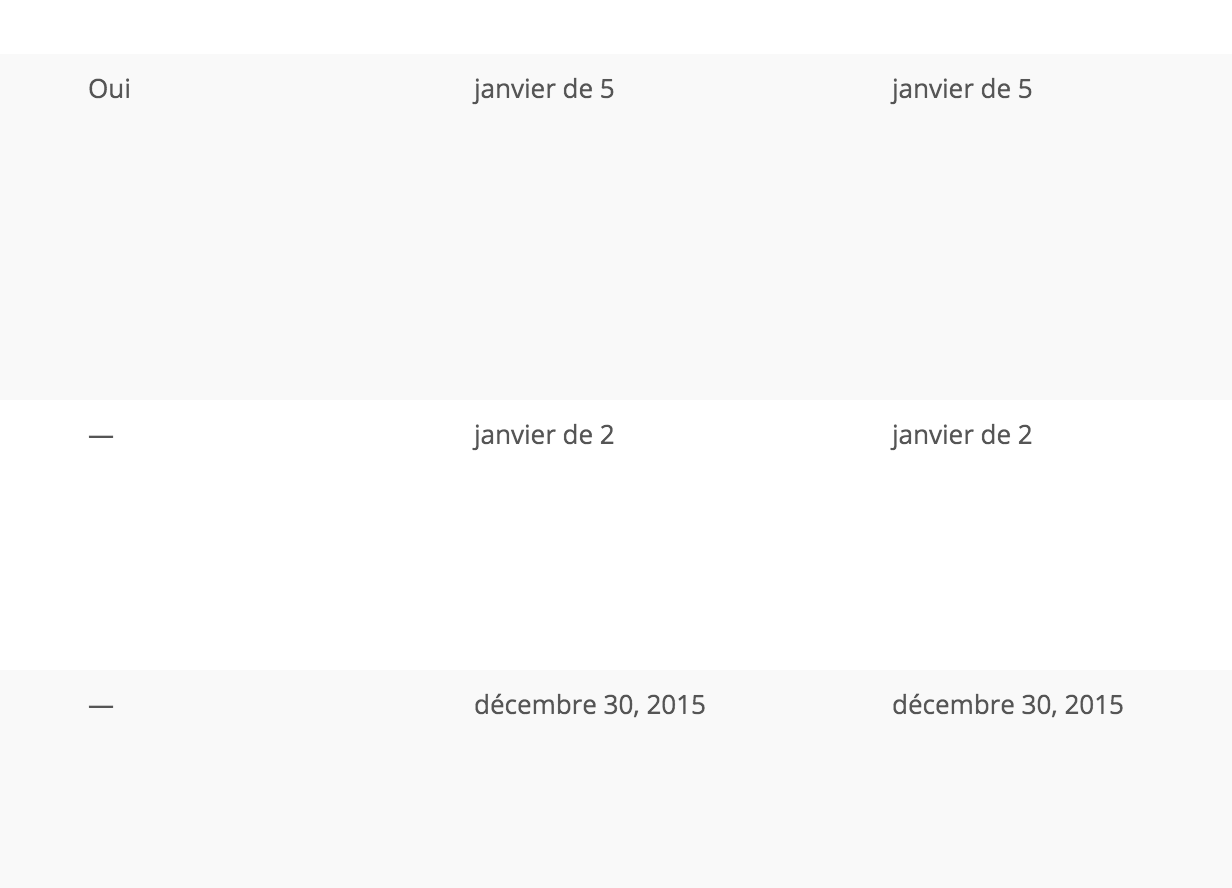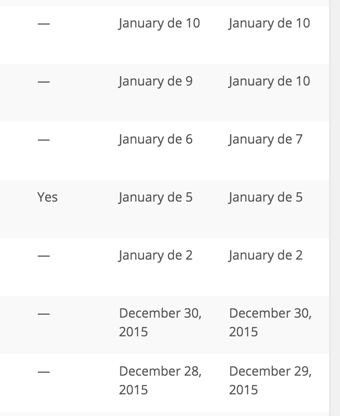 d d[TimeZone] m \a d d[TimeZone] m-> 15 15Europe/Madrid enero a 14 14Europe/Madrid febreroIt happens both for simple and recurrent events. Feel free to look over events published in http://www.maryasexora.com/eventos/
