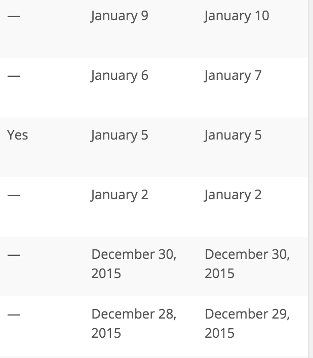 And here you can see the events list transition from 2015 events to 2016 (future up, past down):