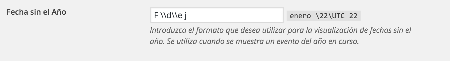 Yet, in English, double-escaping the characters junks out wp-admin’s date in the list of events.
