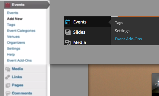 –“Also can you confirm that with only The Events Calendar activated you see the same menu options?”
