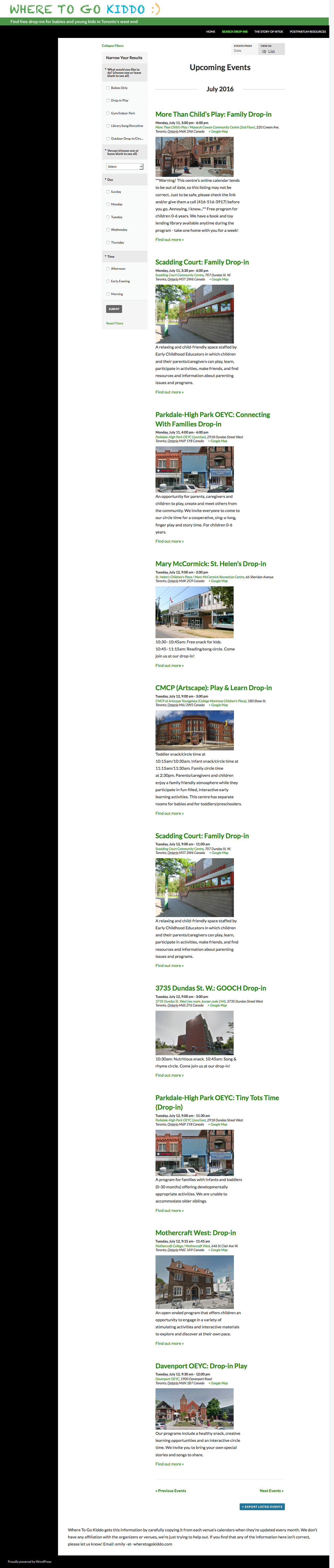 The individual event pages: http://wheretogokiddo.com/event/creating-together-drop-in-program-2015-10-26/2016-07-11/