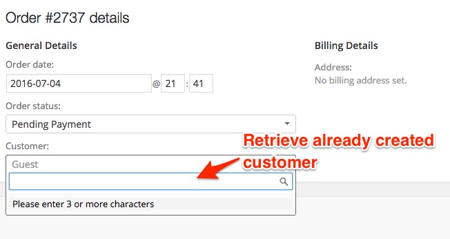- Make sure the customer you are placing the order for is already present in the database (adding a WordPress user with a customer role OR an existing customer with a previous order)