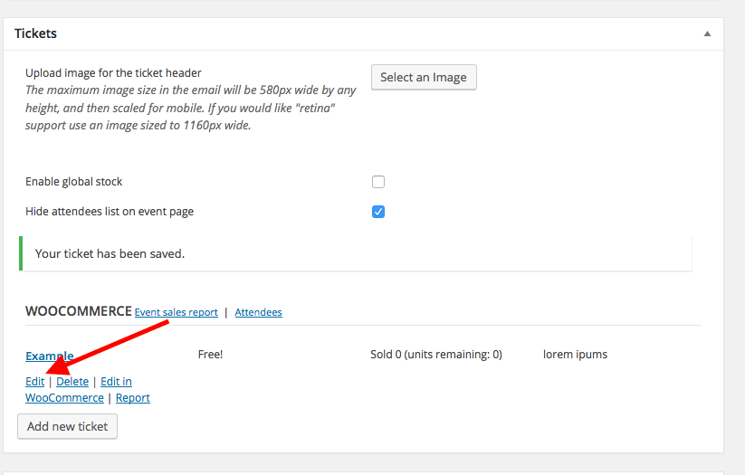 • Scroll down to the “tickets” metabox