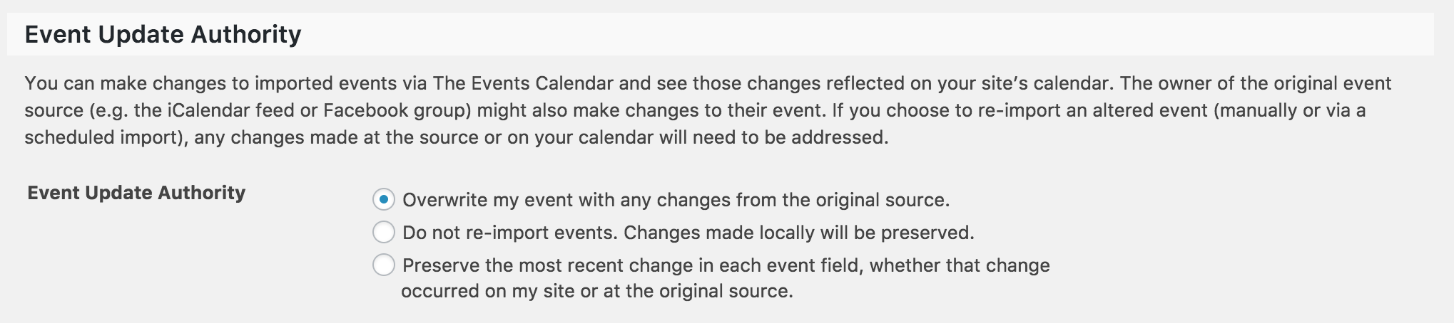 Welcome and thank you for posting. At this time, the best way to make changes to imported events using Events Aggregator > Google Calendars is to make the changes needed to the series of events on Google Calendar, then reimport them into your site. Before doing so, make sure you have the settings correct under your Events > Settings > Imports tab. (see screenshot below)
