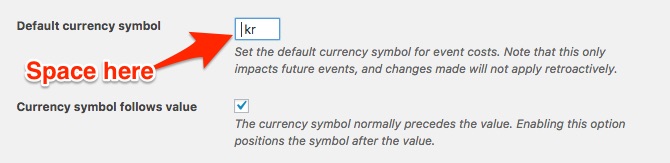I added a space before “kr” as suggested, then went into WooCommerce and removed the decimals.