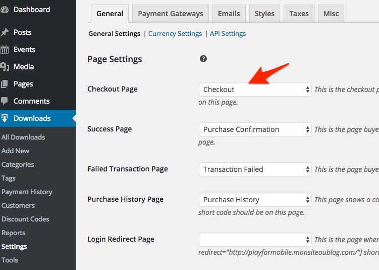 To your point, with EDD, the way to change what page is used as a checkout page can be seen in the following screenshot