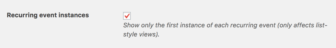 However, yes, it is possible to show only the first instance of a recurring event instead of all of them. You can find that setting on the Events > Settings screen:
