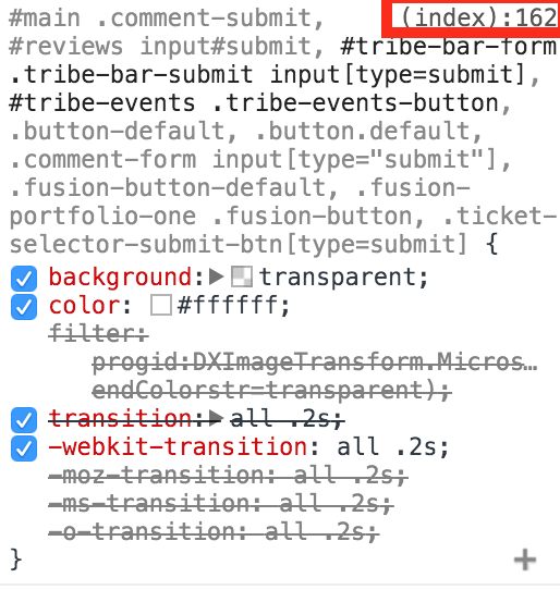 Secondly, the “Find Events” button styling isn’t from Avada core nor from The Events Calendar core stylings. It’s from “avada-stylesheet-inline-css” (wherever that comes from in your Avada theme settings). Here are some applicable screenshots: