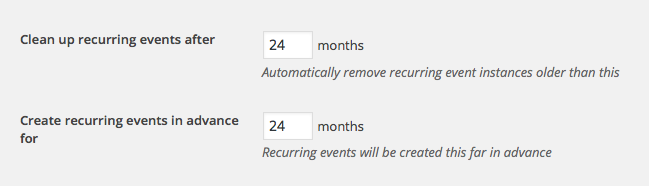 The only tip I can think of might be to head to Events > Settings > General in your wp-admin and look for the two options there related to “recurring event cleanup”. There is an option for the number of months ahead to clean up, and a number of behinds in the past to clean up. Here’s a screenshot of both options for reference: