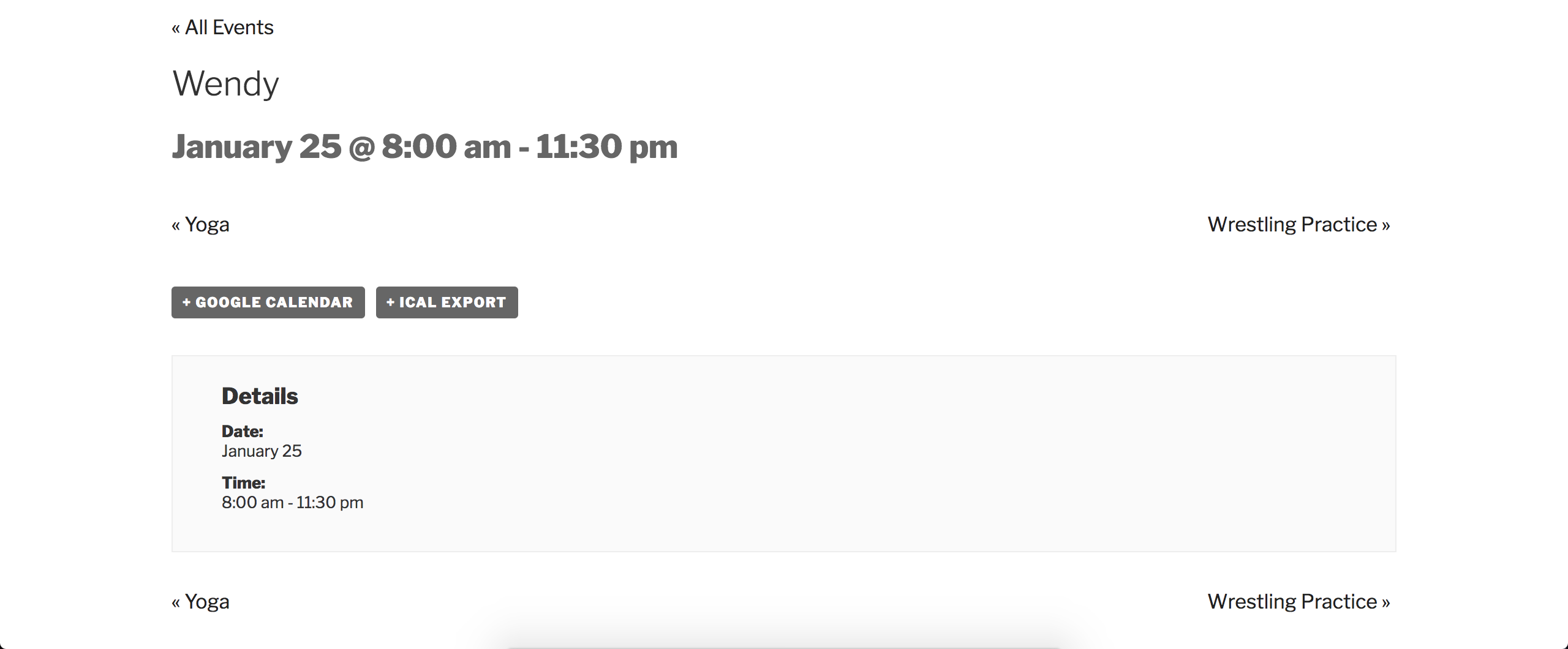 Sorry to see you’ve run into this issue. It’s 11:10 PM as I write this response. I set up a two test events, the first is set for January 25, 2017 from 8:00 AM – 11:30 PM and the second on January 25, 2017 from 11:15 PM – 11:30 PM. Neither event is displaying the “This event has passed.” message.