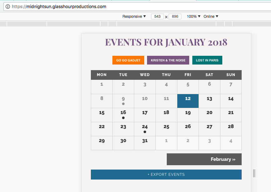 And the calendar is working as expected on the homepage (see next image).