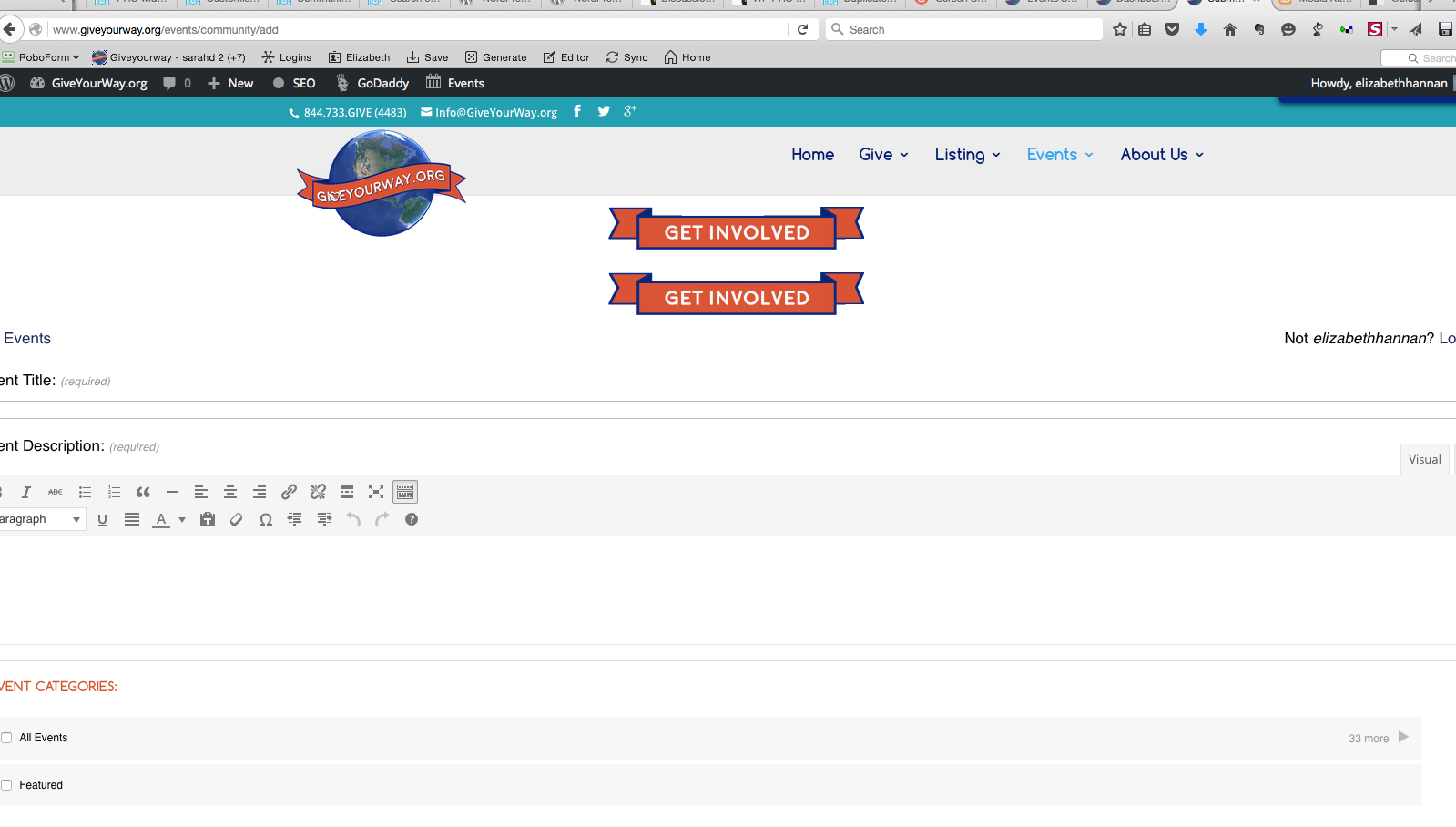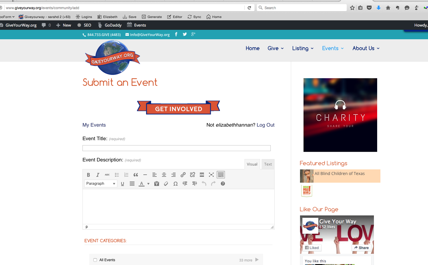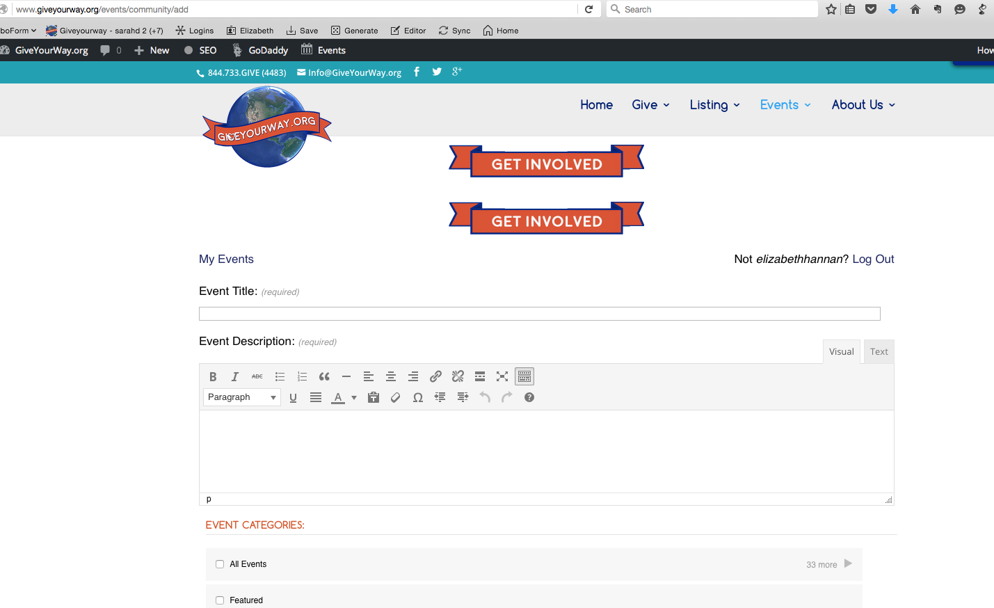 2. http://www.giveyourway.org/events/community/add Yes, when logged in it is present but since you have to login to post an event on the site it is an issue.